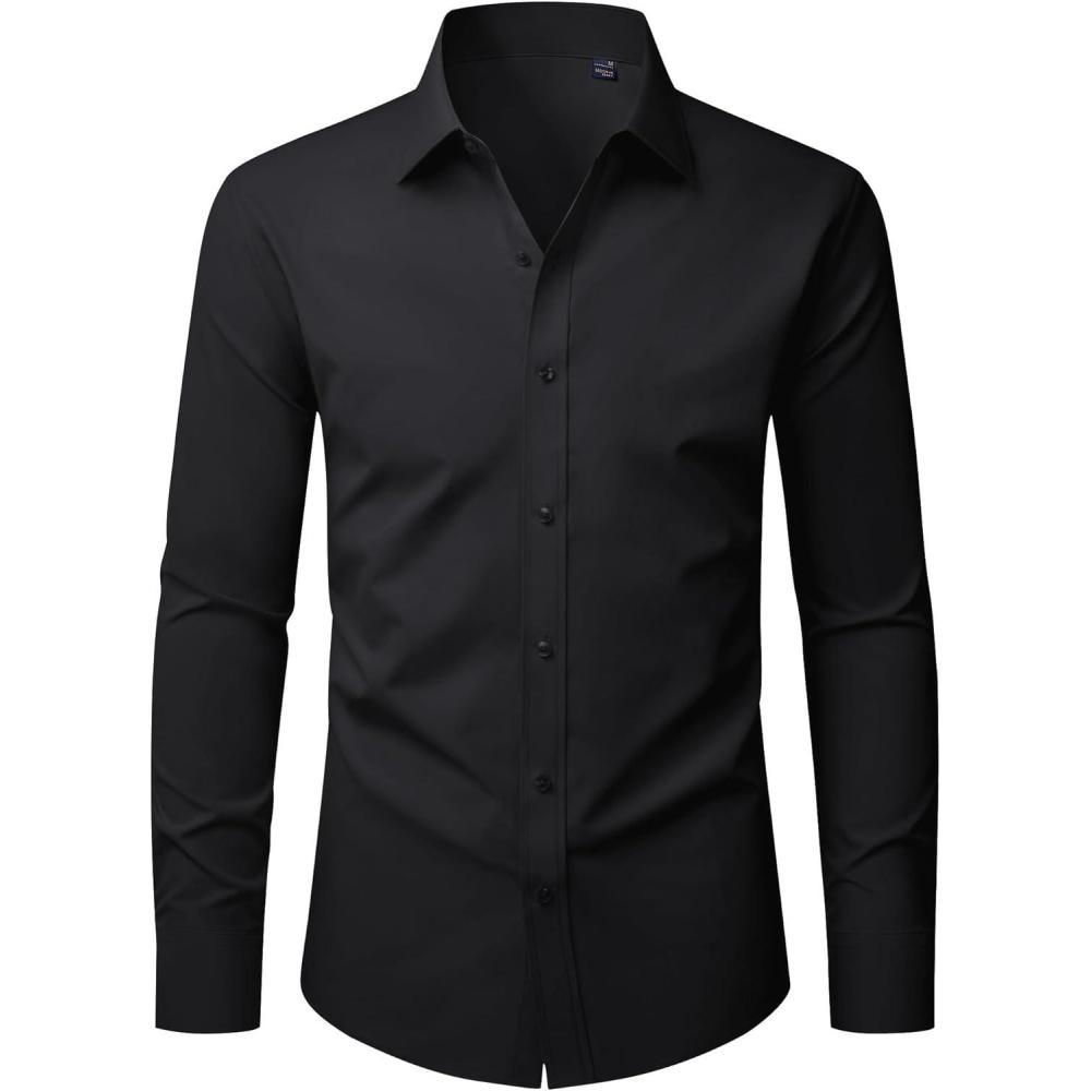 J.VER Mens Dress Shirts Long Sleeve Solid Formal Shirt Stretch Business Casual Wedding Button Down Shirts(Black)