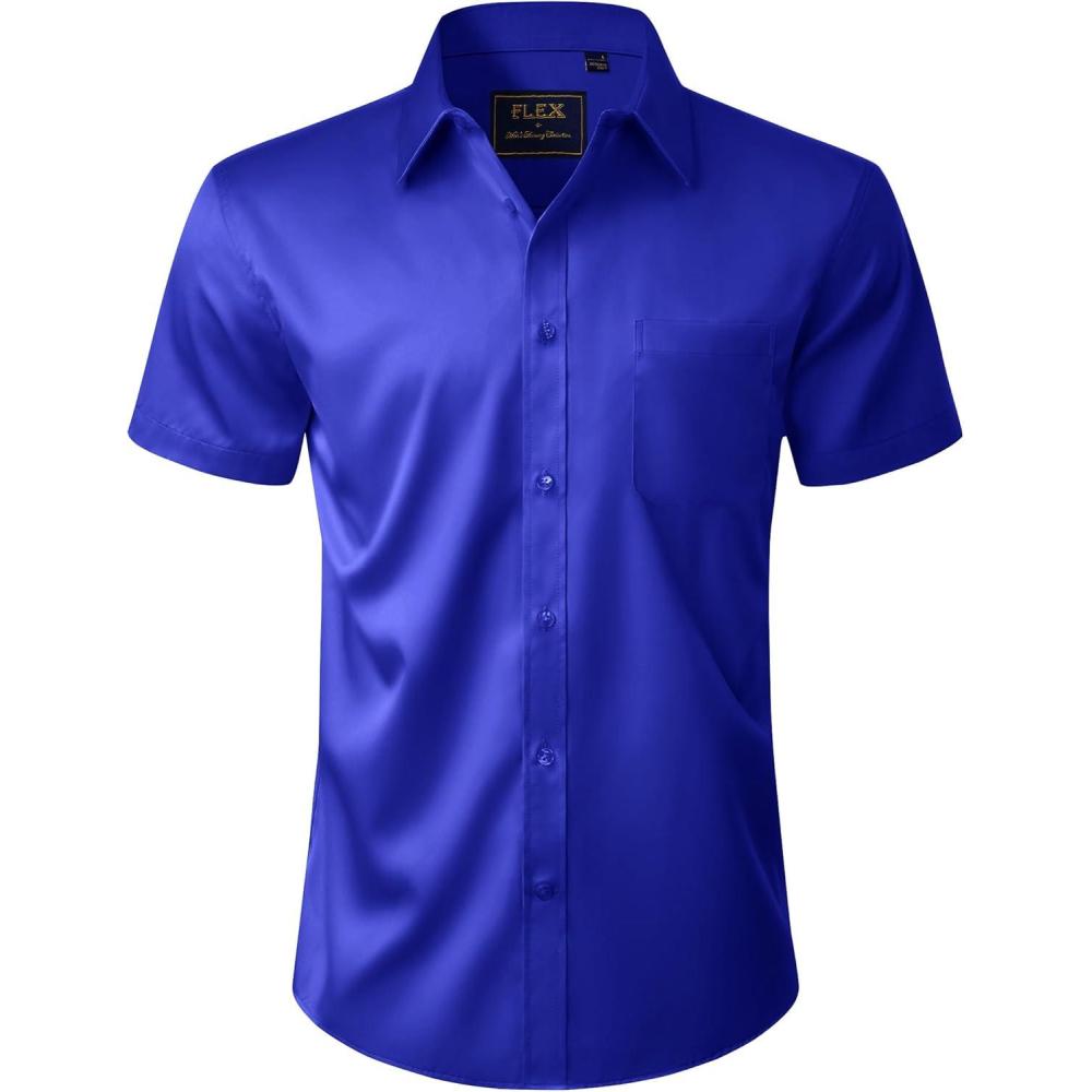 J.VER Men’s Short Sleeve Dress Shirts Stretch Casual Button Down Shirts with Pocket for Business Wedding(Royal Blue)