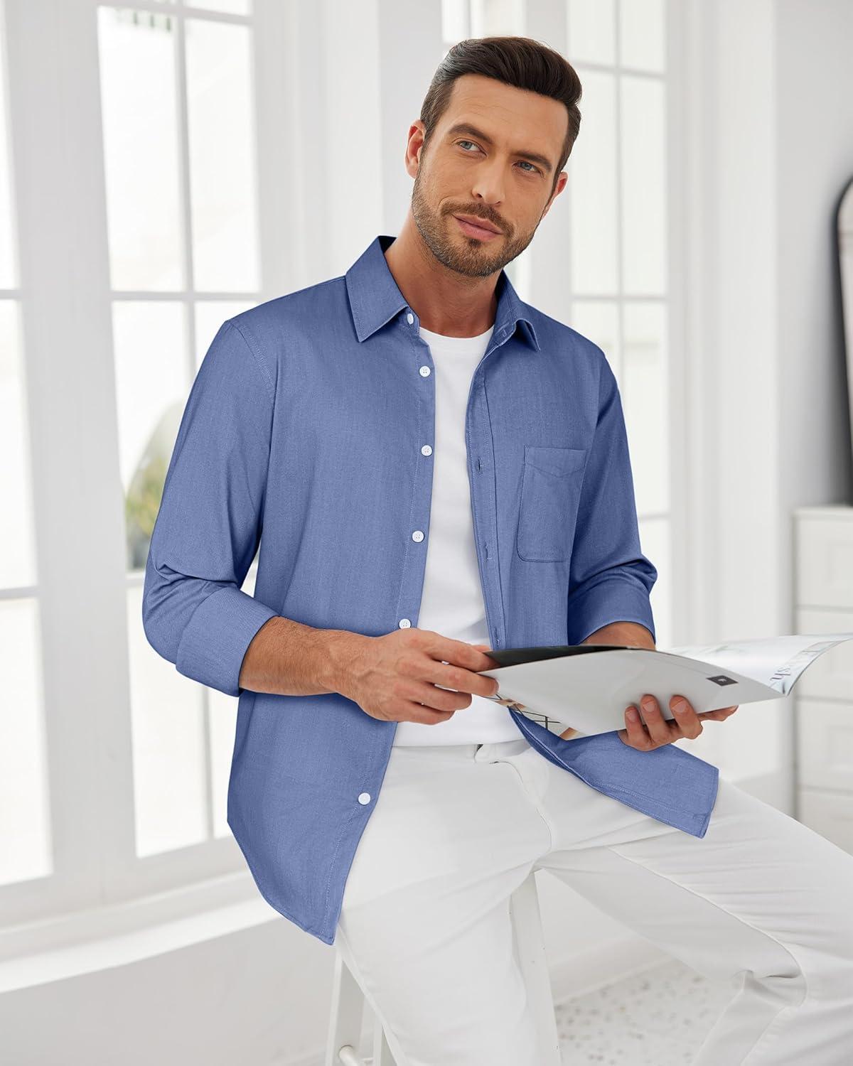 J.VER Oxford Shirts for Men Stretch Button Down Shirts Solid Casual Long Sleeve Dress Shirts with Pocket(Cadet Blue)