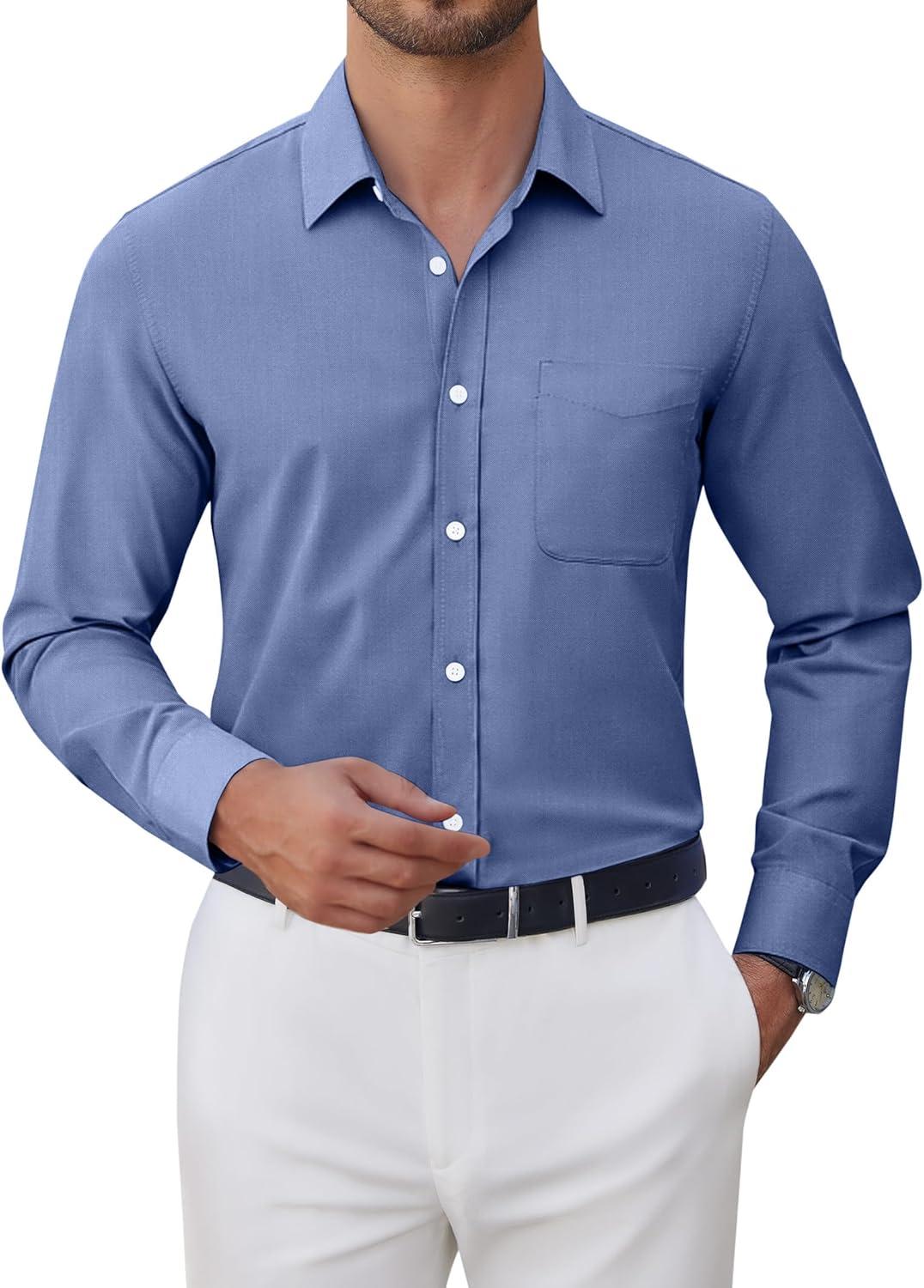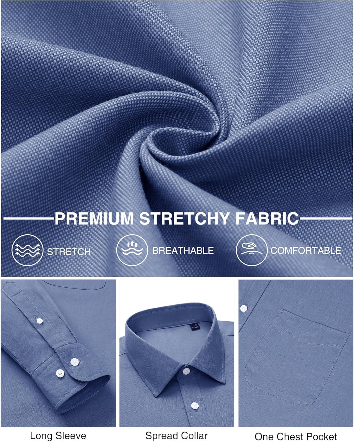 J.VER Oxford Shirts for Men Stretch Button Down Shirts Solid Casual Long Sleeve Dress Shirts with Pocket(Light Blue)