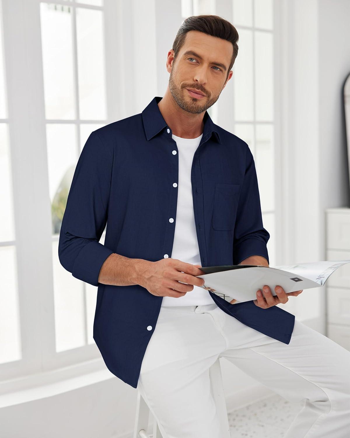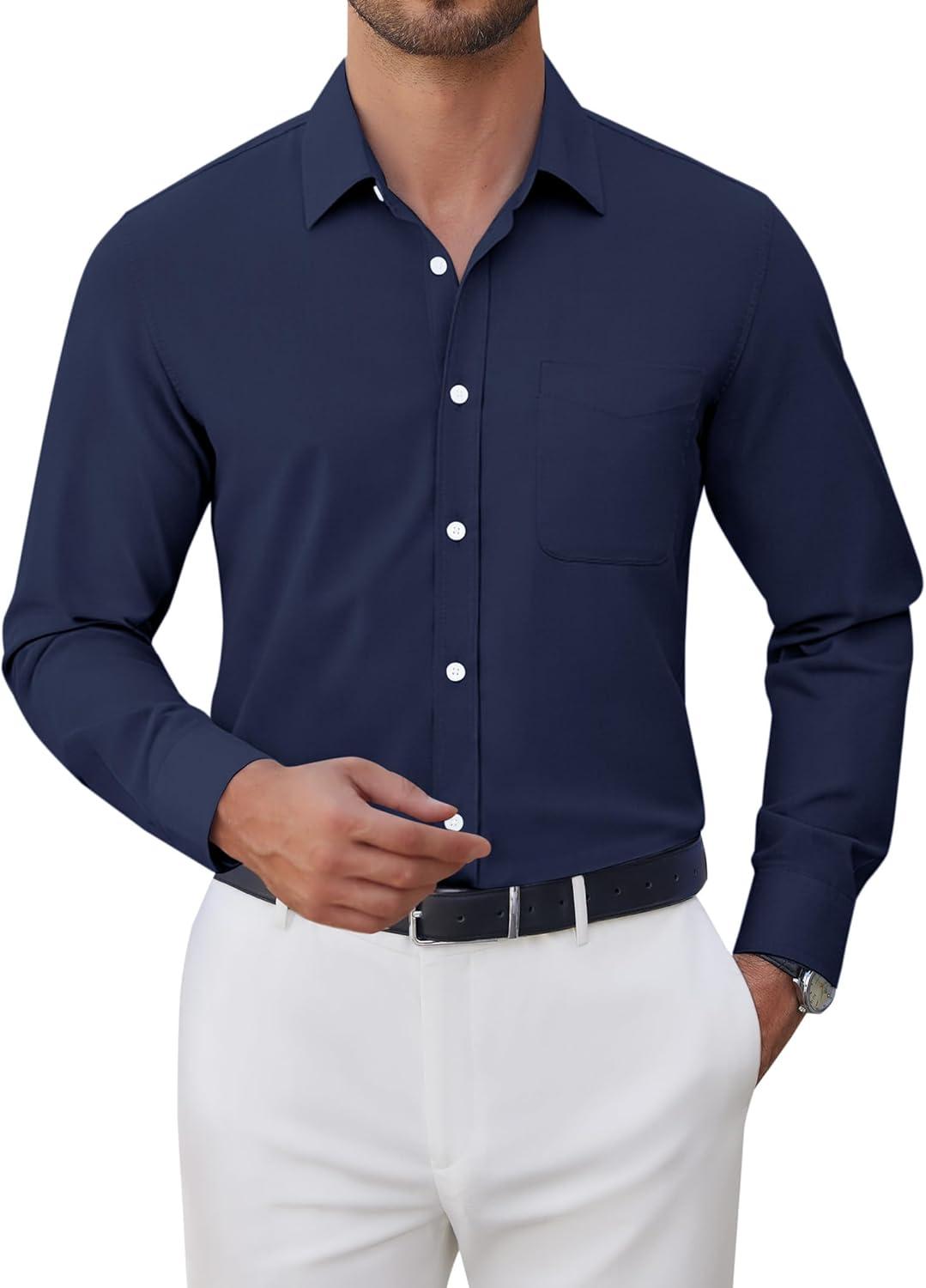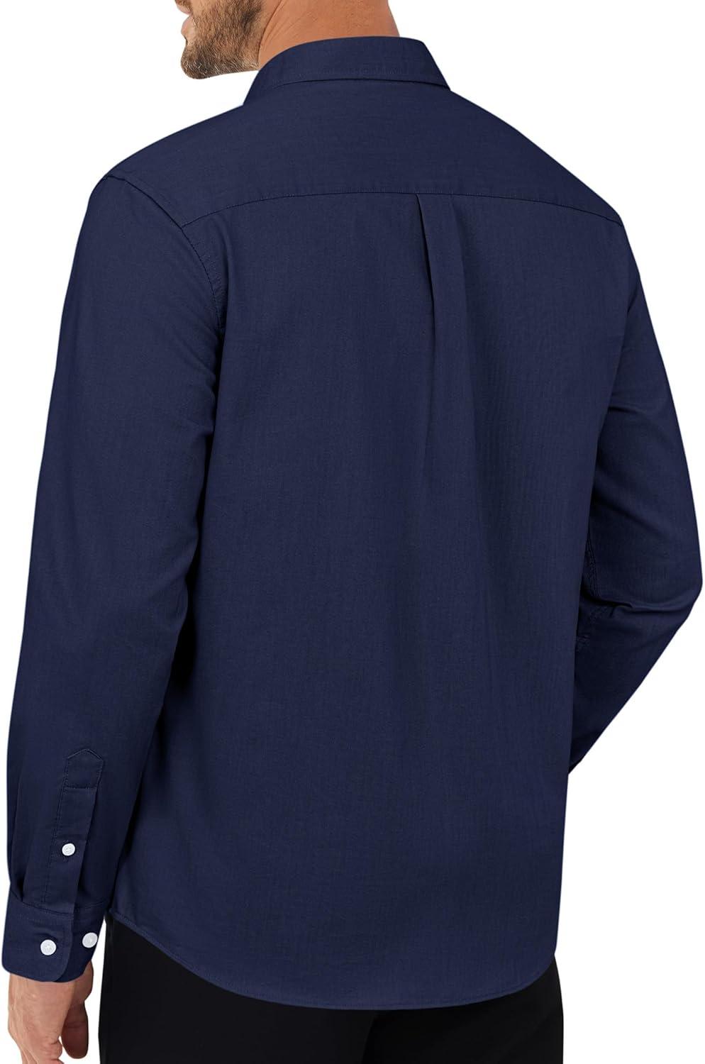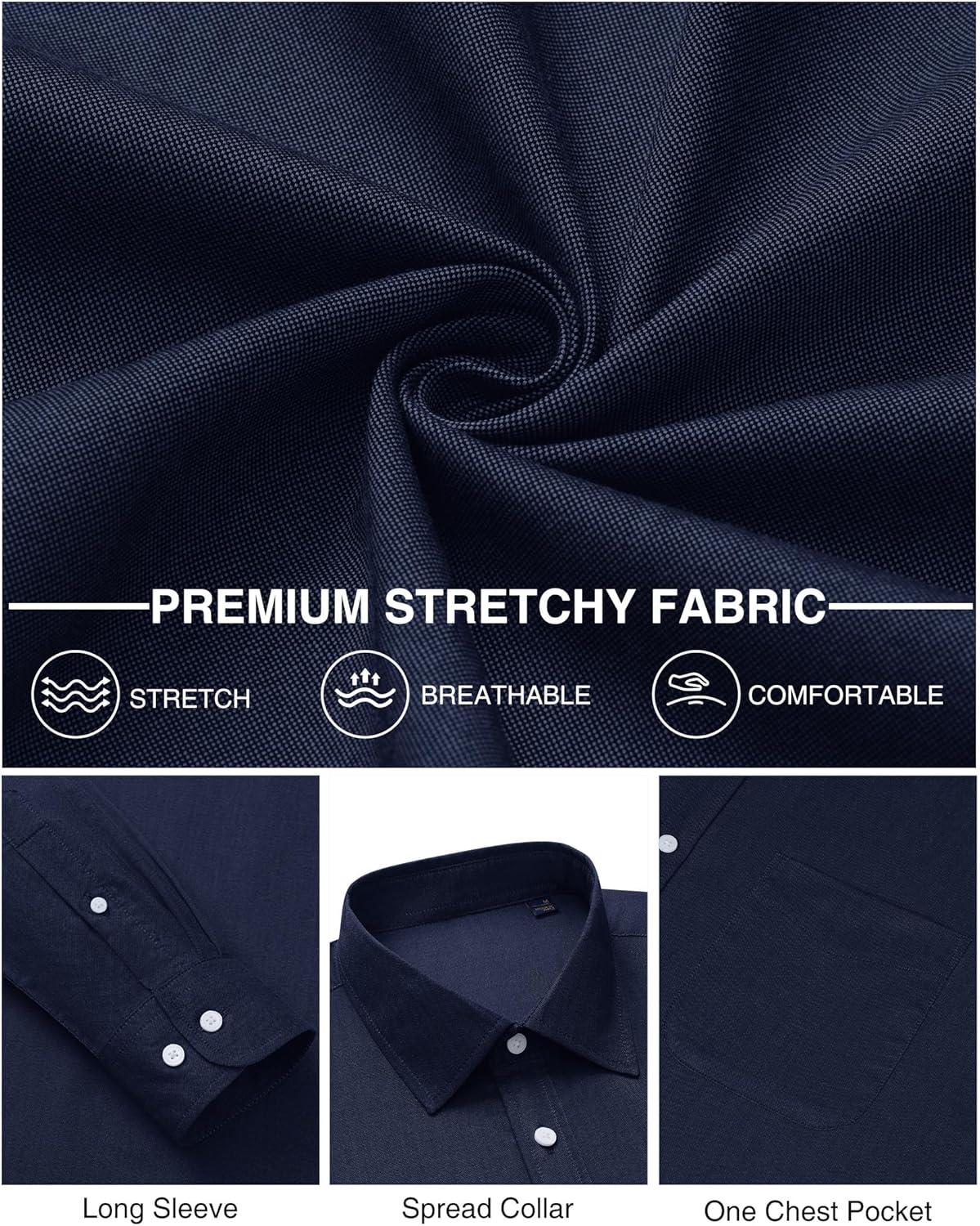 J.VER Oxford Shirts for Men Stretch Button Down Shirts Solid Casual Long Sleeve Dress Shirts with Pocket(Navy Blue)