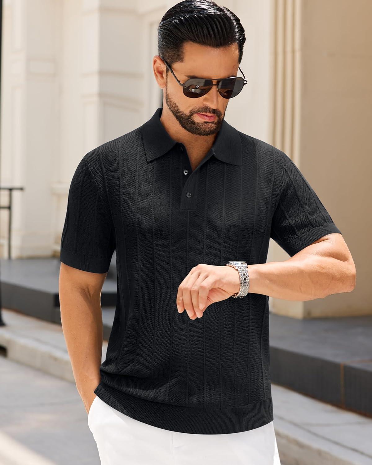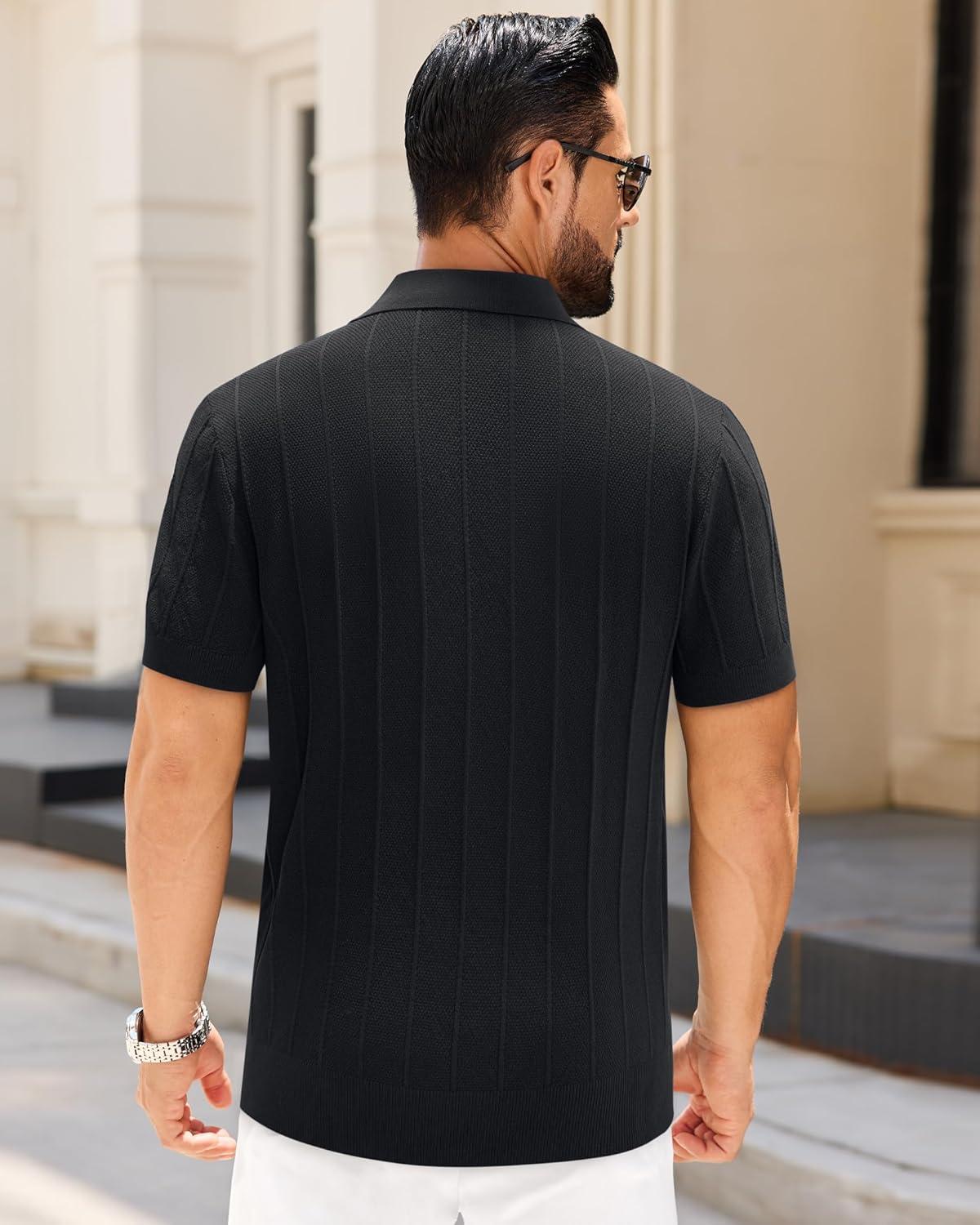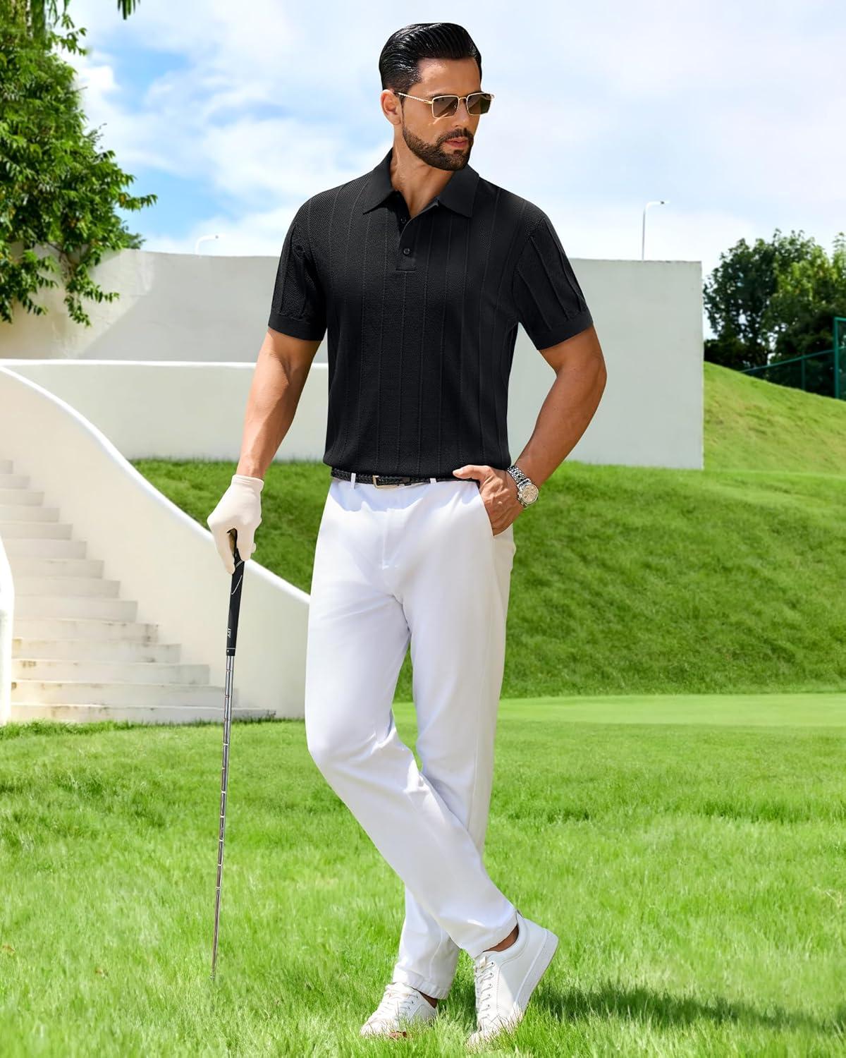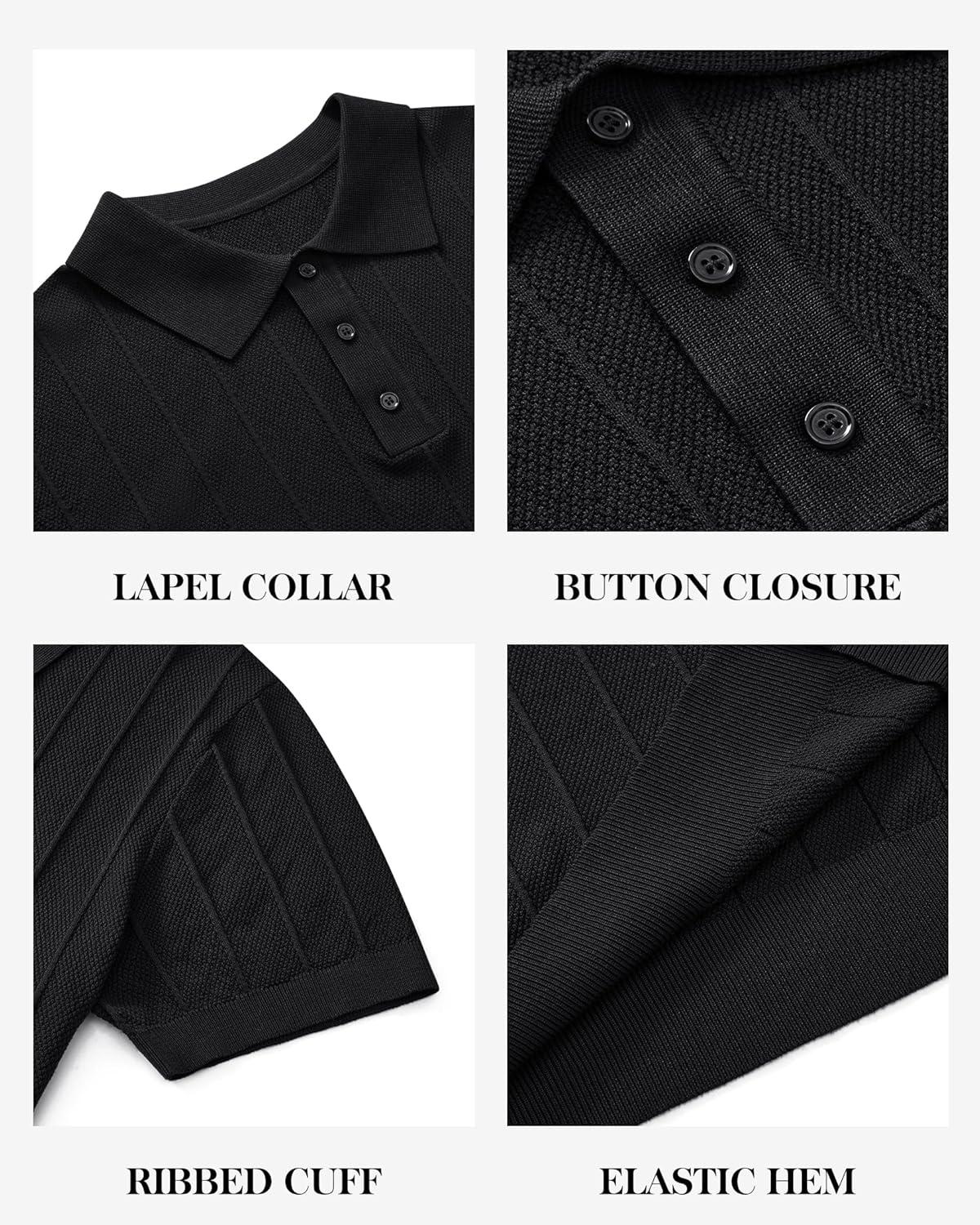 J.VER Polo Shirts for Men Short Sleeve Ribbed Textured Knit Shirt Stretch Casual Golf Tops(Black)