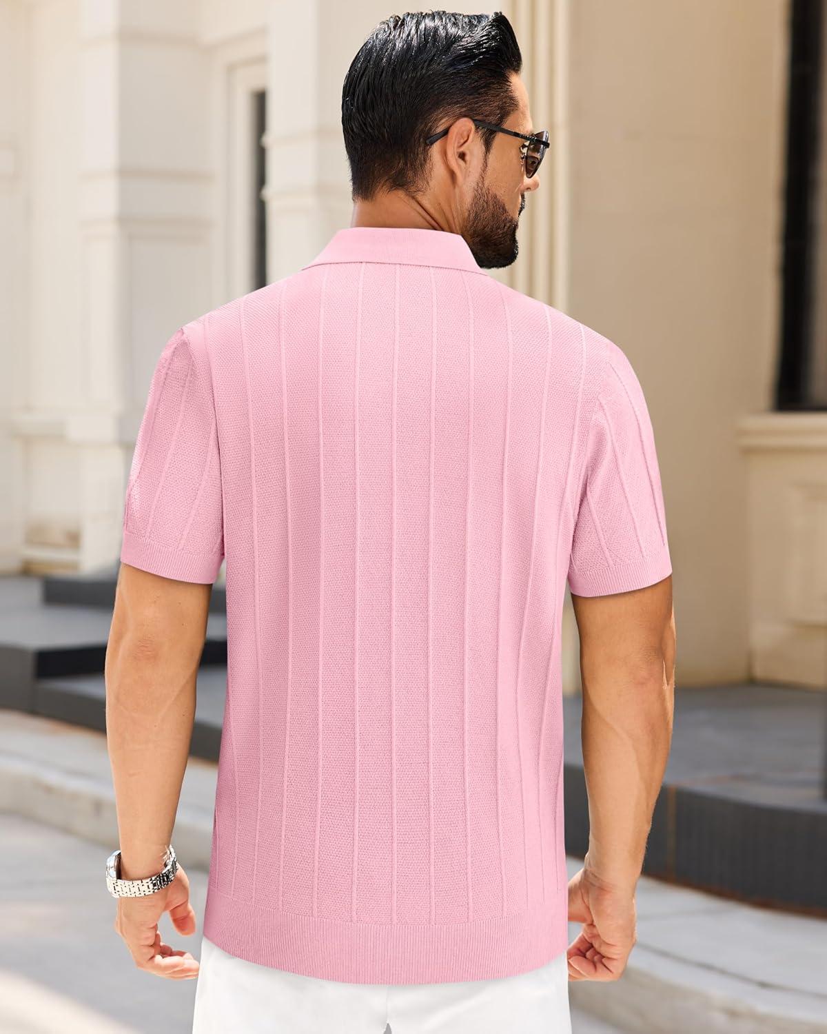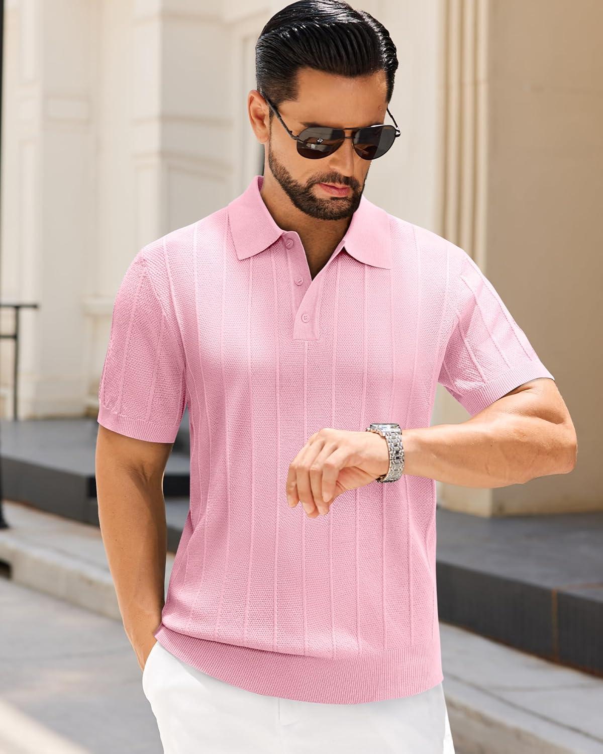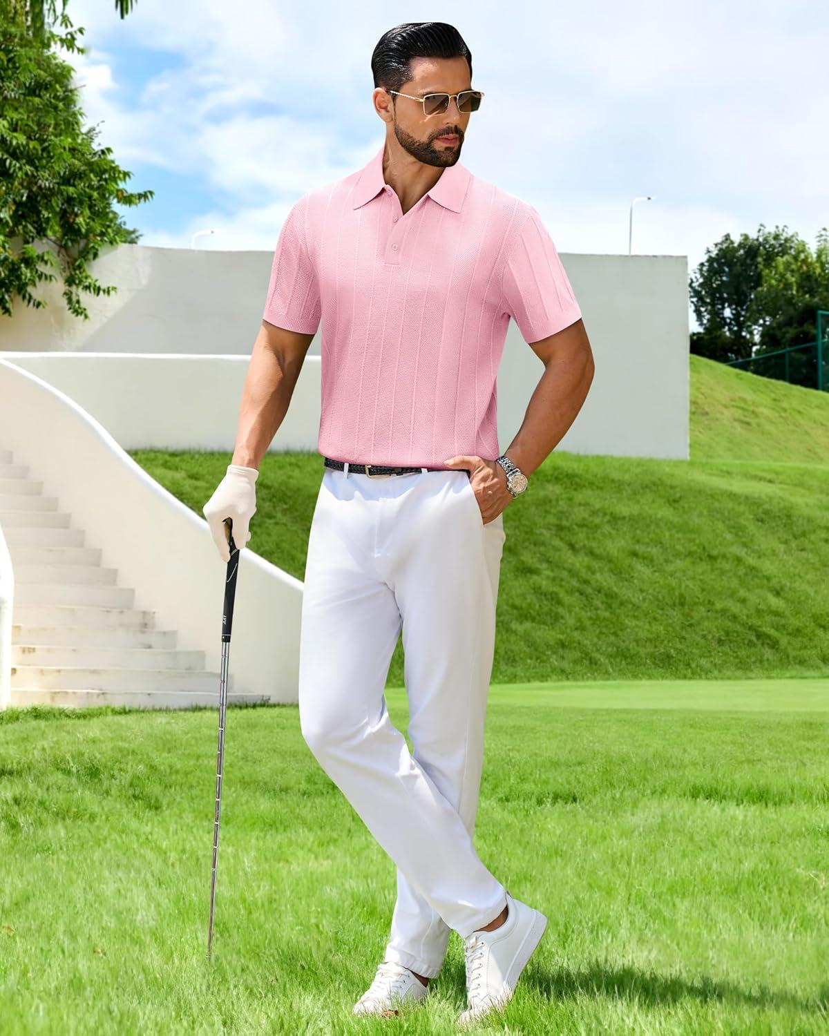 J.VER Polo Shirts for Men Short Sleeve Ribbed Textured Knit Shirt Stretch Casual Golf Tops(Pink)